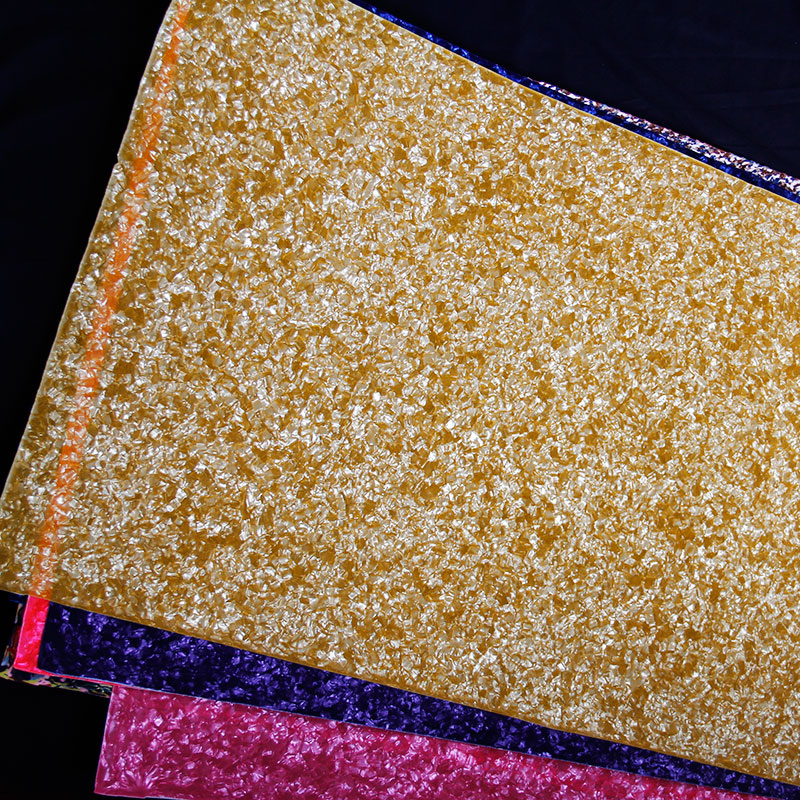3、它質(zhì)地柔韌,不易折斷,并具有色澤鮮艷、花色繁多、閃光性好、有彈性、耐水、耐油、耐酸、強度高、容易加工成形等。
